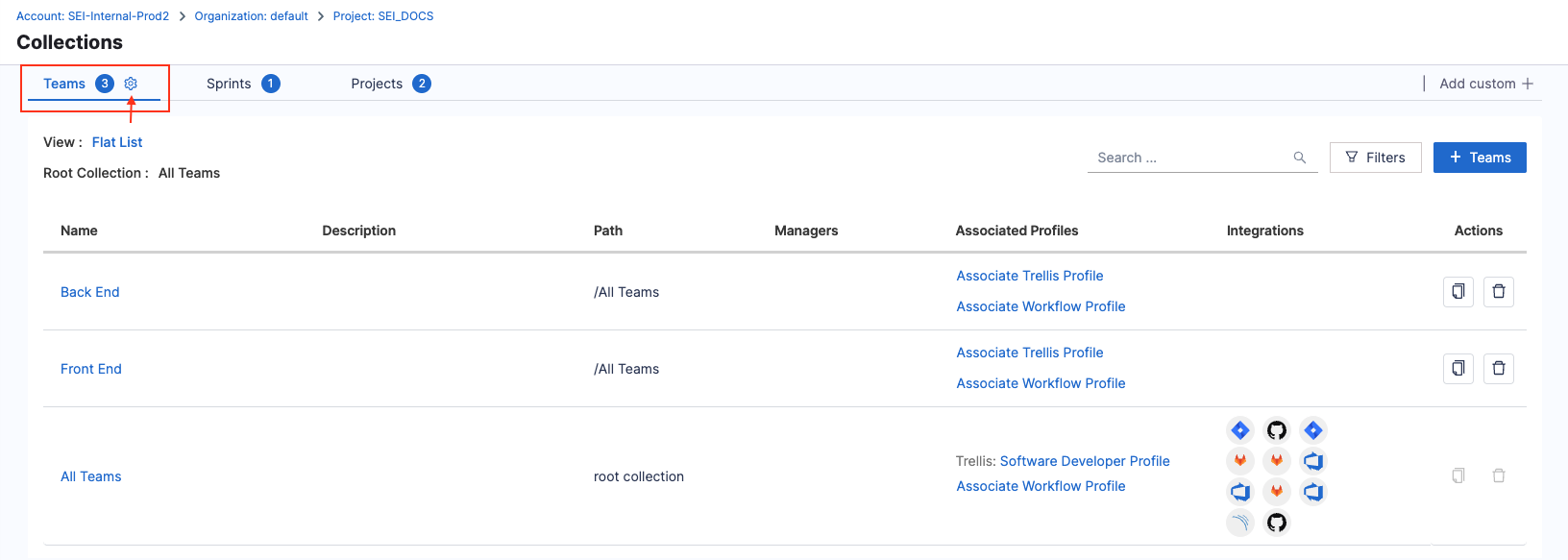 In your Harness project, go to the SEI module, select your Project, and then select Collections.